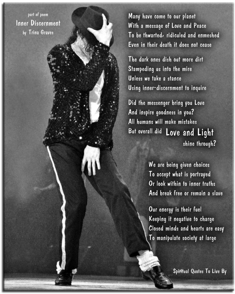 All of the Michael Jackson quotes, poems and song lyrics on this page are inspirational words of wisdom, Spirit and love.